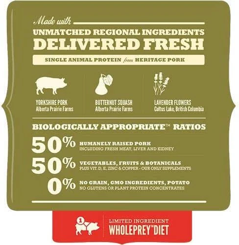 De voeding van ACANA is volgens het Biologically Appropriate-principe bereid en zit vol waardevolle voedingsstoffen voor een perfecte voeding van honden van alle rassen en leeftijden. ACANA Yorkshire pork bestaat uit 60% dierlijke ingrediënten en 40% plantaardige ingrediënten. Met maar 1 eiwitbron ideaal voor honden met een gevoelige maag en darm.