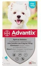 Advantix Anti-Vlooien En TekenmiddelGeschikt voor honden tussen de 4 en 10 kg. * Doodt teken en vlooien * Heeft een afwerende werking op teken, muggen, zandvliegen en stalvliegen * Is geschikt voor honden tussen de 4 en 10 kg.
