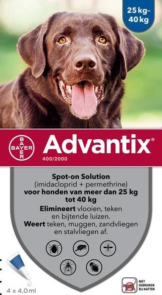 Advantix Spot On 400 4 ml Anti vlooien en tekenmiddel 4 pip 25 40 Kg direct bestellen in onze webshop! Maak je hond weer parasietvrij