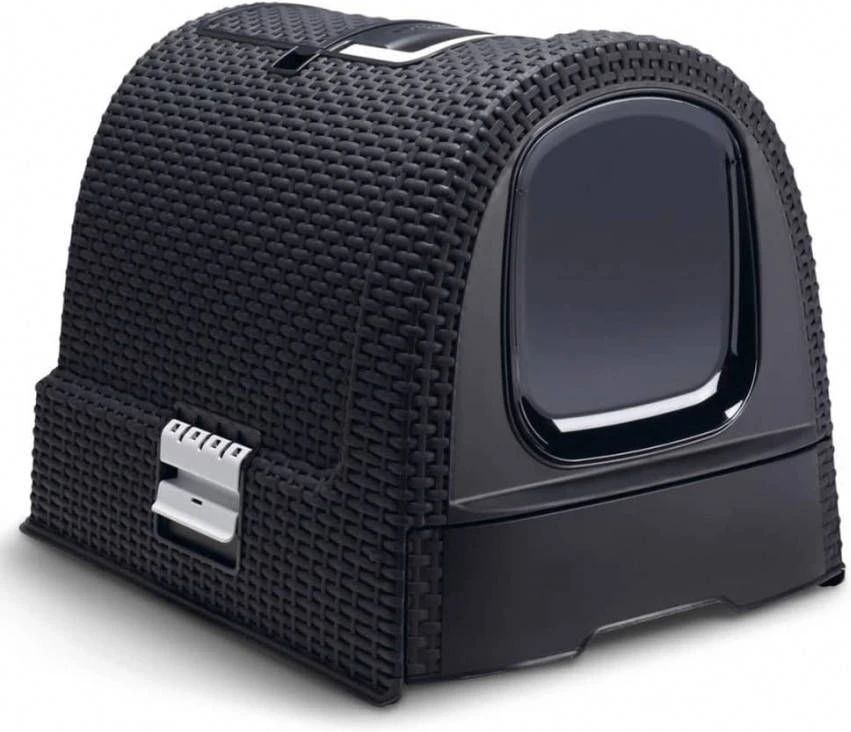 Curver kattentoilet, in de kleur antractiet, van het oersterke materiaal rattan.