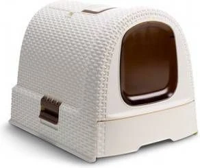 Curver kattentoilet, in de kleur mokka, van het oersterke materiaal rattan.