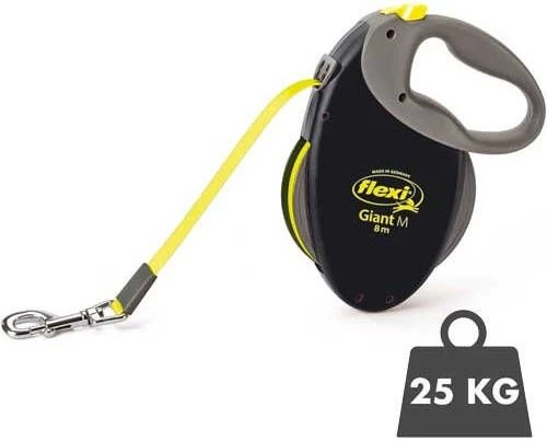 De Flexi Giant M voor de hond (neon) is een robuuste hondenriem met een lengte van maximaal 8 meter en is geschikt voor honden tot 25 kg.