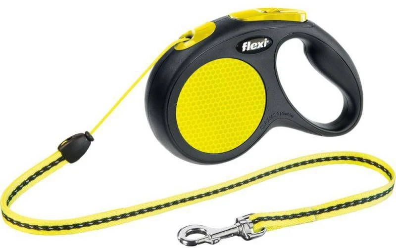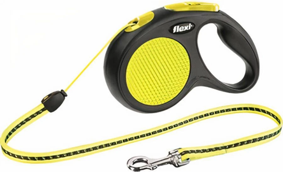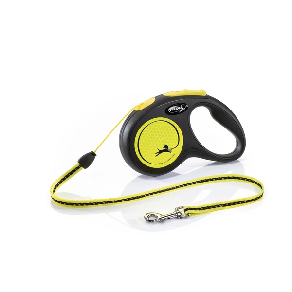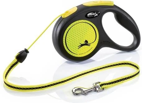 Flexi New Neon Koord- Met koord- in twee verschillende afmetingenDeze rollijn van Flexi is geheel in neon uitvoering waardoor je goed zichtbaar bent in het donker. Zowel de koord als de zijkant van het handvat heeft een sterk reflecterend vermogen voor extra veiligheid.De rollijn is zowel verkrijgbaar voor honden tot 12kg als voor honden tot 20kg. Daarbij is deze neon rollijn ook uit te breiden met de handige Multi box zodat je altijd de poepzakjes bij de hand hebt. Voor de specificaties en gedetailleerde afmetingen zie het uitklapmenu hiernaast.