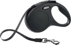 Bij Flexi kan je kiezen tussen lijnen met een koord en lijnen met tape. Het is een persoonlijke voorkeur welke variant je het fijnst vindt. In principe zijn beide soorten even sterk en veilig om te gebruiken. De New Classic Tape bevat een tape.