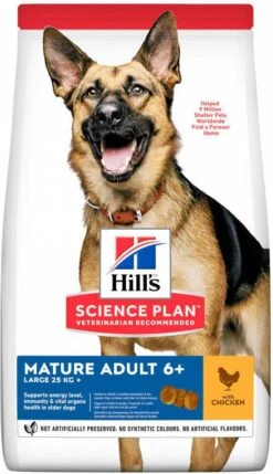 Hill’s Science Plan Mature Adult Large Breed met kip hondenvoer is voer speciaal voor oudere honden van grote rassen van 6 jaar en ouder.