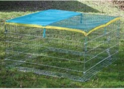 Konijnenren Dante- Afmeting: 115x115x65cm Konijnenren Dante is een mooie en compacte konijnenren geschikt voor je konijnen om eens lekker rond te huppelen op het gras. Het anti-uitgraafsysteem zorgt ervoor dat ze zich niet makkelijk kunnen uitgraven. Konijnenren Dante is een gegalvaniseerde ren en wordt geleverd inclusief afdeknet. Tevens dient de helft van het afdeknet als zonnescherm.