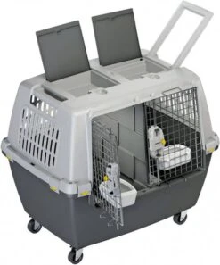 – Geschikt voor grote honden tot 50kg. De vervoersbox is ideaal voor het reizen per auto, trein, vliegtuig, boot of camper. Bovenop op de box zitten 2-handige opbergvakken voor het bewaren van bijvoorbeeld de set wielen of een extra voerbakOnder andere geschikt voor:Boxer, Dobermann, Labrador Retriever, Duitse Herder, Rottweiler.