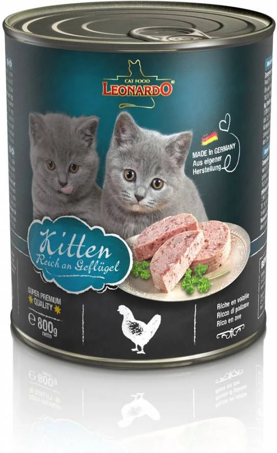 Op zoek naar een natvoeding van goede kwaliteit voor uw kitten? Leonardo Kitten Natvoer in blik is een heerlijke natvoeding in blik met hoge biologische waarden en kwaliteit voor uw kat.