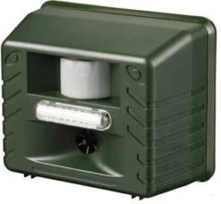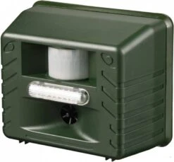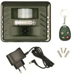 Het ultrasone dierenafweermiddel van Nature is geschikt voor het op een humane en onschadelijke manier afschrikken van dieren die op uw terrein komen. Het apparaat kan een combinatie gebruiken van 3 verschillende eigenschappen om indringers te verjagen: ultrasoon geluid, knipperlichten en een hoorbaar alarm. Het apparaat is effectief tegen katten, honden, vossen, (steen)marters, reigers, duiven, ratten, muizen en andere dieren die worden opgemerkt door de sensor. Het ultrasone geluid is verstelbaar voor 1 of meerdere diersoorten, afhankelijk van het gewenste werkgebied. Het volume van het audioalarm is ook instelbaar. Dit model werkt op 4 1,5 V C-batterijen, deze worden niet meegeleverd. Er wordt wel een afstandsbediening meegeleverd.