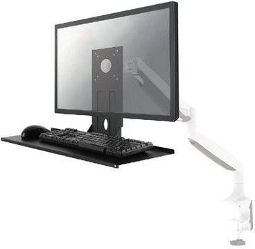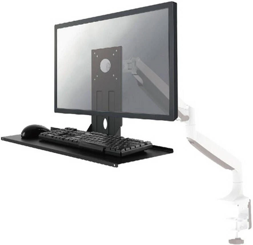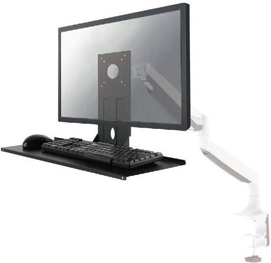 Met deze universele Neomounts by Newstar toetsenbord- en muishouder, model KEYB-V200BLACK , bevestigt u een toetsenbord en muis aan een Neomounts by Newstar bureau-, plafond-, vloer- of wandsteun. Universele toetsenbord- en muishouder. Eenvoudig te monteren op iedere Neomounts by Newstar steun. Deze combinatie biedt de mogelijkheid een toetsenbord, muis en flatscreen overal te monteren. Zowel aan de wand, plafond als bureau. U kunt zelf kiezen welke arm u geschikt vindt voor uw situatie en hierop vervolgens uw toetsenbord, muis en monitor installeren.De installatie is een fluitje van een cent! De houder is 65 cm breed en 21 cm diep. De hoogte van de verticale strip is 33 cm. Aan de achterzijde van de verticale strip zitten gaten waardoor kabels netjes kunnen worden weggewerkt. Het maximale draagvermogen is 2 kg. Dit systeem maakt gebruik van het VESA-gatenpatroon waardoor u deze houder aan iedere Neomounts by Newstar LCD monitor arm kan monteren. Hierdoor kiest u de oplossing welke het beste bij uw situatie aansluit. Zo kan u kiezen voor een wandbevestiging als voor een gasgeveerde bureausteun. Combinaties van toetsenborden, muizen en LCD schermen zijn hierdoor eenvoudig mogelijk.