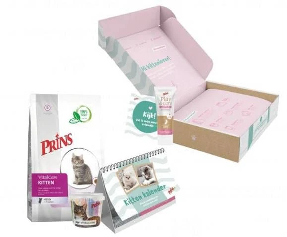 Verras jezelf of iemand anders met de Prins Opgroeibox VitalCare Kitten, boordevol lekkere, leuke én leerzame benodigdheden.