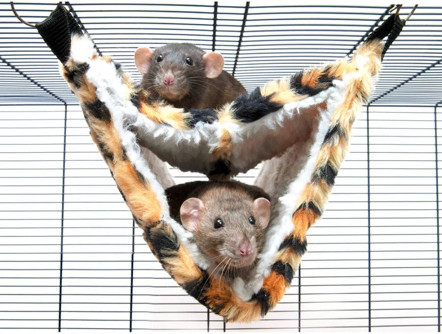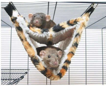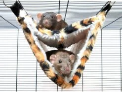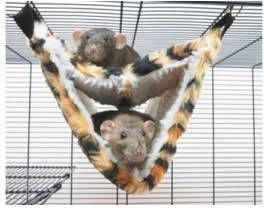 Ratten en fretten houden ervan zich in hangmatten neer te vlijen! Deze extra knusse Hangmat Relax de Luxe nodigt niet alleen uit om te doezelen maar ook om te spelen en te verstoppen. Door de “holfactor” is deze hangmat bijzonder geliefd, uw lieveling zal zich goed en veilig voelen ! De hangmat is aan de binnen- en buitenkant met zachte vacht overtrokken. Met ophangsysteem, passend voor iedere hekwerkkooi. Wasbaar! Gelieve op te letten: De kleur en het motief kunnen van de afbeelding afwijken!.