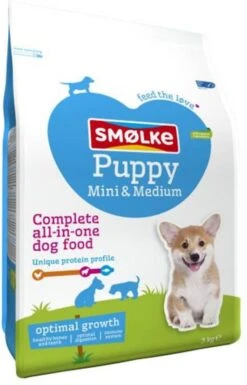Smølke Puppy Mini-Medium is een complete Alles-in-één hondenvoeding, afgestemd op pups met een maximaal volwassen gewicht van 30kg.