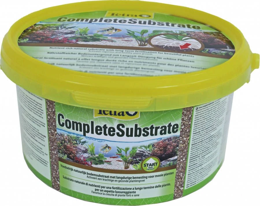 Tetra Complete Substrate is een voedselrijk bodemsubstraat met langdurige bemesting. Voor een krachtige en gezonde plantengroei. * Geconcentreerd bodemsubstraat met langdurige werking. * Voor het inrichten van nieuwe aquaria. * Direct klaar voor gebruik. * Helpt planten snel en goed aanslaan en maakt wortels sterker. * Natuurlijk product verrijkt met speciale micro voedingsstoffen en mineralen. * Bron van ijzer voor diepgroene planten. * Natuurlijke zwarte turf met hoog humusgehalte schept een evenwichtig bodemklimaat. * Geoptimaliseerd mengsel van kwartszand zorgt voor een snelle beworteling en bevordert de watercirculatie. * Zonder nitraat en fosfaat. * Voor alle zoetwateraquaria. Optimale verzorging van aquariumplanten: voor een permanent gezonde en prachtige plantengroei adviseren wij een maandelijkse wortelbemesting met Tetra Crypto plus een regelmatige bladbemesting met Tetra PlantaMin of Tetra PlantaPro. In weelderig beplante aquaria is extra verrijking van de belangrijke plantenvoedingsstof CO2 aan te bevelen (bijv. Met Tetra CO2 Optimat of Tetra CO2 Plus). Zorg verder voor een dagelijkse belichtingstijd van 10 tot 12 uur met een constante lichtsterkte (lichtbron regelmatig vervangen, zes tot twaalf maanden). Vermijd direct zonlicht in het aquarium, aangezien dit algengroei bevordert. 2,5 kg voor een aquarium van 50-60 liter. 5,0 kg voor een aquarium van 100-120 liter. (Dit artikel mag vanwege de Belgische wetgeving niet in België verkocht worden.).