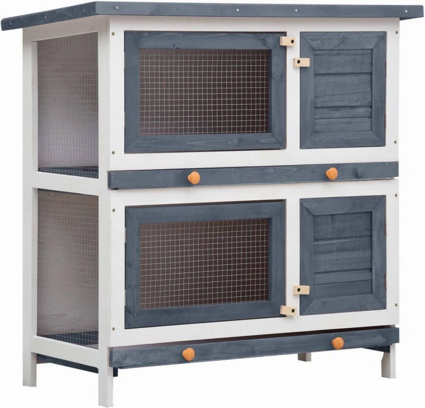 VidaXL Konijnenhok Voor Buiten Met 4 Deuren Hout Grijs
