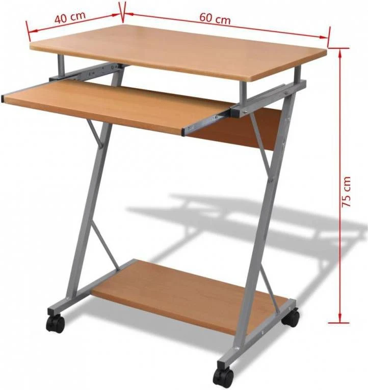 Dit computerbureau , 60 x 40 x 75 cm, is ideaal voor uw computer, monitor, muis en toetsenbord. Het uitschuifplateau is gemaakt voor uw toestenbord en/of muis. De onderste plank is bedoeld om uw computer erop te zetten of andere spullen. Bestel vidaXL Studenten computerbureau 60 x 40 x 75 cm(bruin ) online bij fonQ. Alle vidaXL Tafels uit voorraad leverbaar. Voor 23:59 besteld, uiterlijk 14 maart in huis.